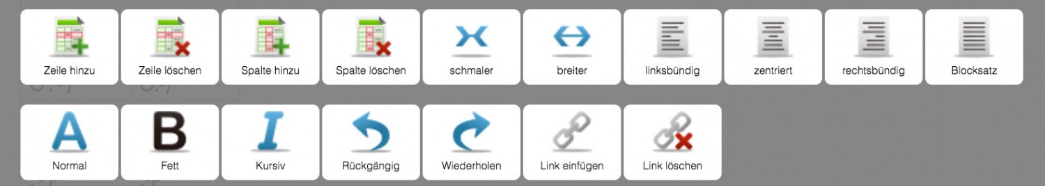 Daneben stehen dir die selben Formatierungsmöglichkeiten wie bei den Textblöcken zur Verfügung. Auch können in Text in einer Tabellenzelle Links eingefügt werden. Es ist allerdings nicht möglich, Bilder in Tabellen einzufügen.
